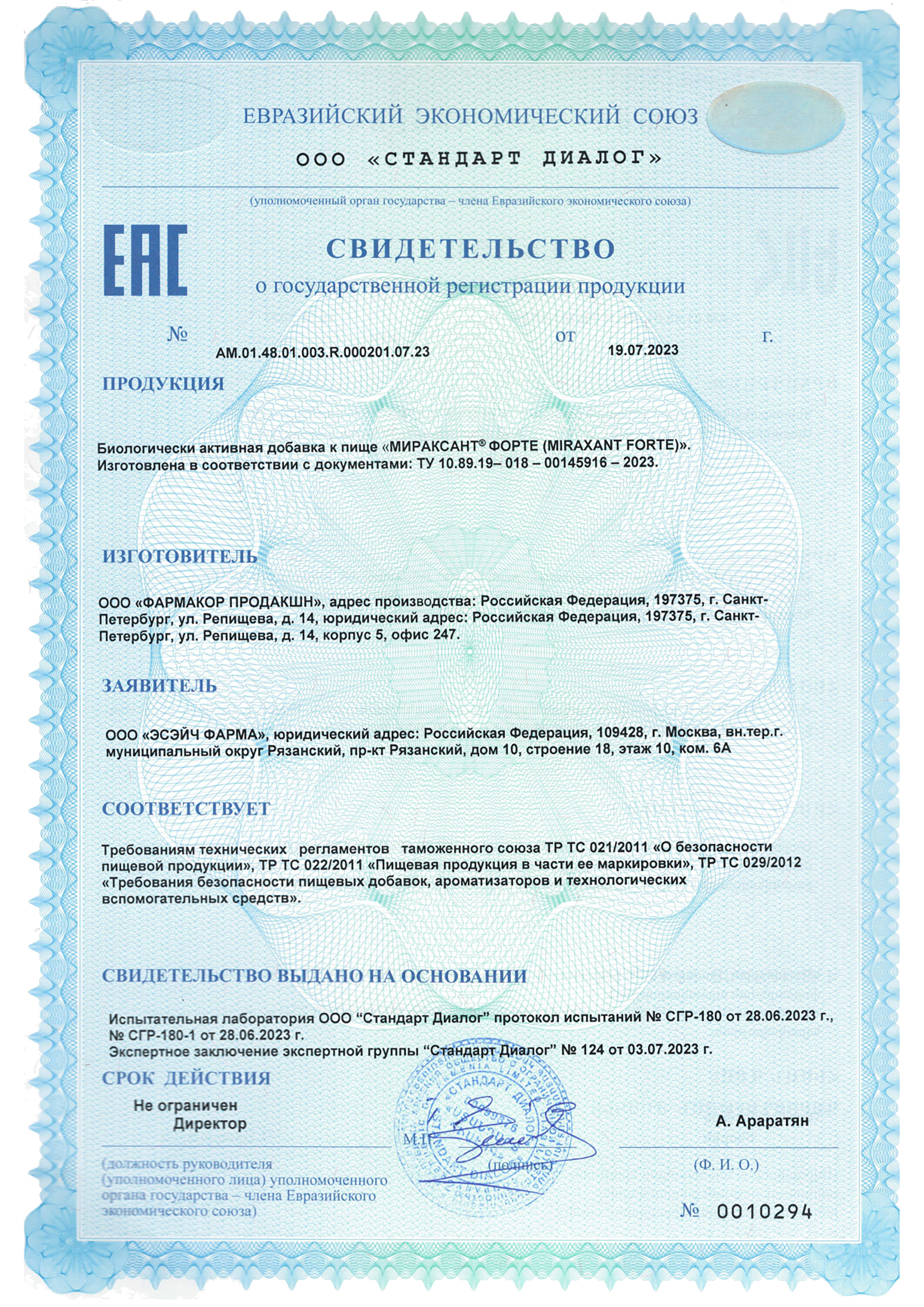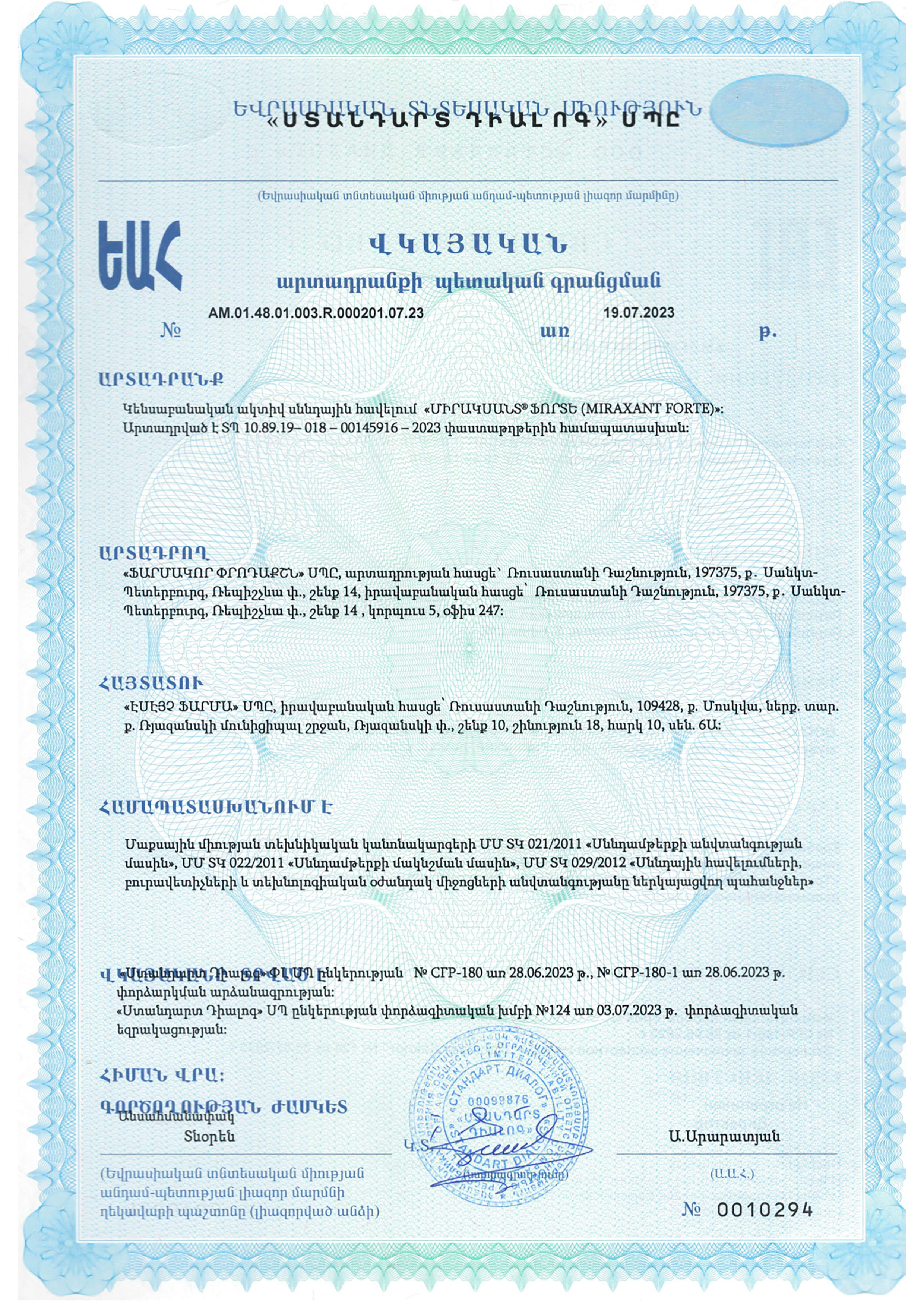 - Новое название – МИРАКСАНТ ФОРТЕ